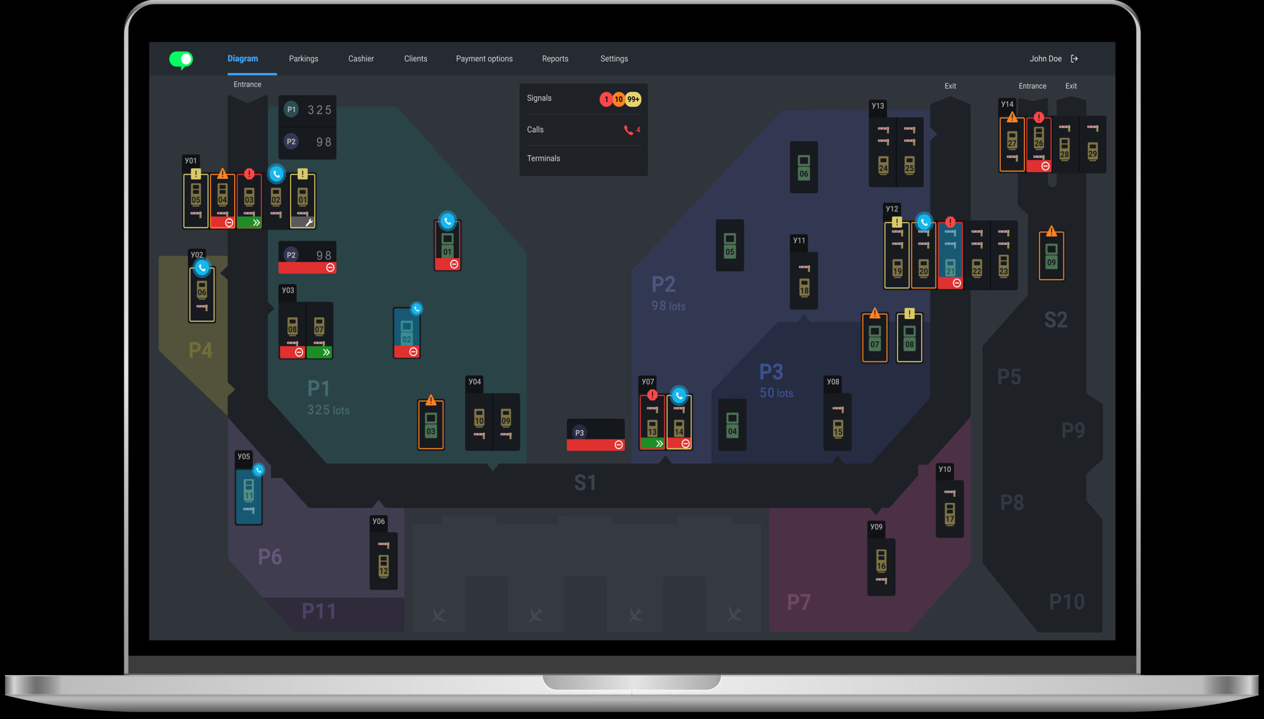 Our user-friendly web control interface is your parking powerhouse, accessible from any device, wherever you are. Navigate effortlessly with our unique control diagram tailored to your parking space, ensuring seamless interactions with all parking devices. With CleverPark, one operator can effortlessly oversee the entire parking network.